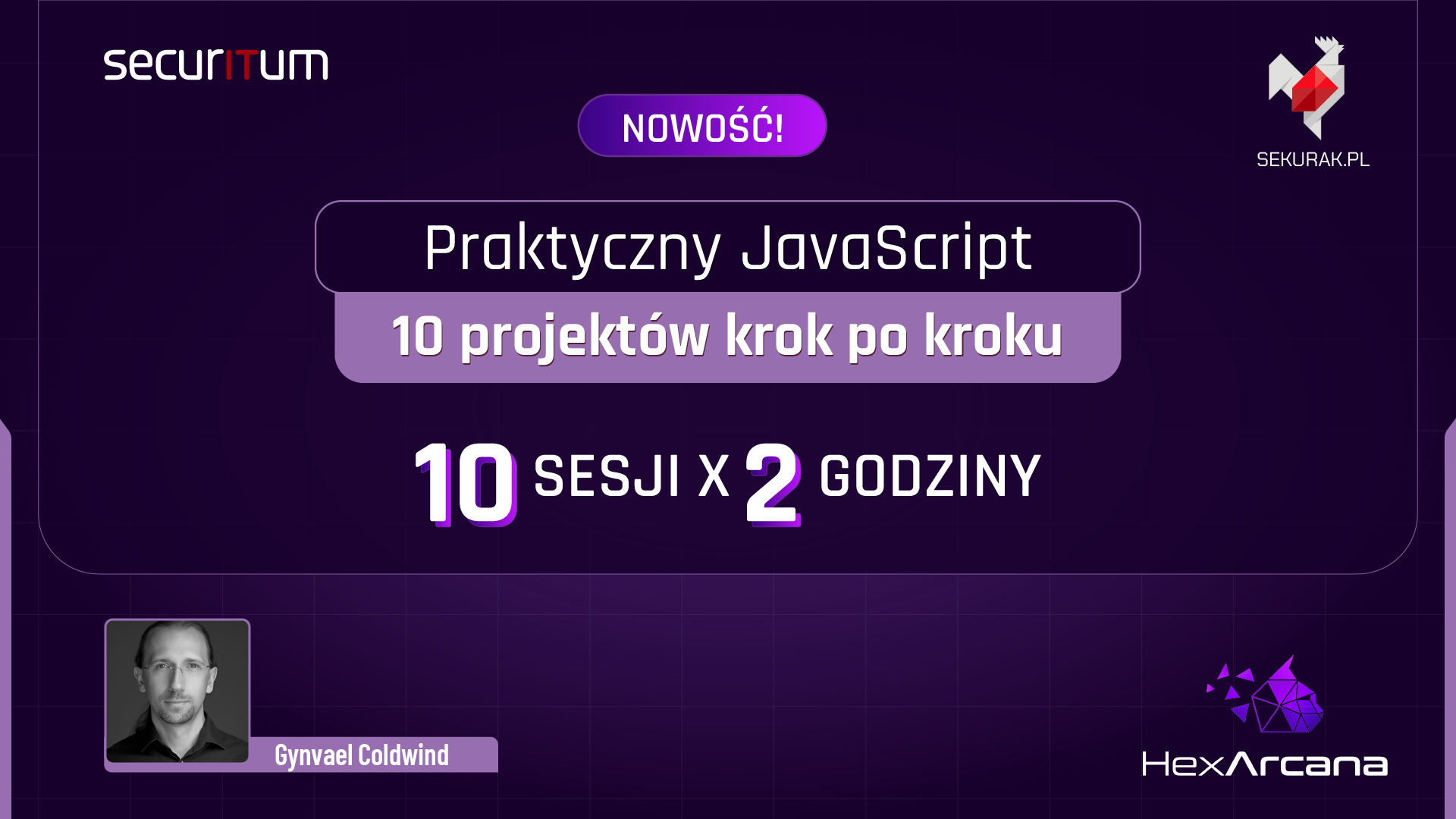 JavaScript jest wszędzie! Zarówno na frontendzie, jak i na backendzie. Pojawia się nawet jako język skryptowy w niektórych aplikacjach. JavaScript, podobnie jak innych języków programowania, najlepiej jest uczyć się w praktyce – na własnych projektach. Zapraszamy Cię zatem na nasze nowe, składające się z 10 spotkań, szkolenie! Podczas każdego spotkania Gynvael Coldwind weźmie na tapetę jeden pomysł, przekaże potrzebną teoretyczną wiedzę oraz zaprezentuje, jak taki projekt krok po kroku zaimplementować, jednocześnie tłumacząc wszystkie związane z tym aspekty.